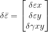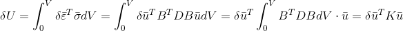 Dove D è la matrice di legame elastico e u è il vettore degli spostamenti nodali nella configurazione di equilibrio. Grazie alla scelta di applicare gli spostamenti infinitesimi, è possibile trascurare i contributi energetici δu = D · δε associati alla deformazione virtuale in quanto infinitesimi di ordine superiore.