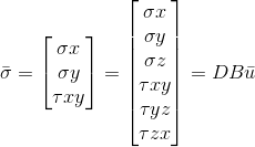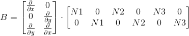 Nella prima formula K= si può mostrare come fatto a lezione che l'integrale sul volume corrisponde a ottenere: K=a t (B)^T DB con a=area dell'elemento triangolare e t=spessore dell'elemento .